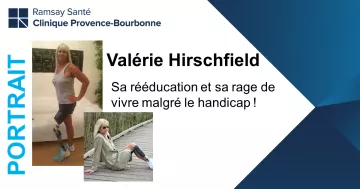 Amputée de la jambe gauche après avoir été infectée par un staphylocoque doré en 2004, Valérie Hirschfield a entamé une rééducation dix ans plus tard, à la Clinique Provence-Bourbonne (Ramsay Santé) située à Aubagne (Bouches-du-Rhône). Véritable force de la nature, cette mère de famille de 58 ans réalise des défis sportifs plus spectaculaires les uns que les autres.